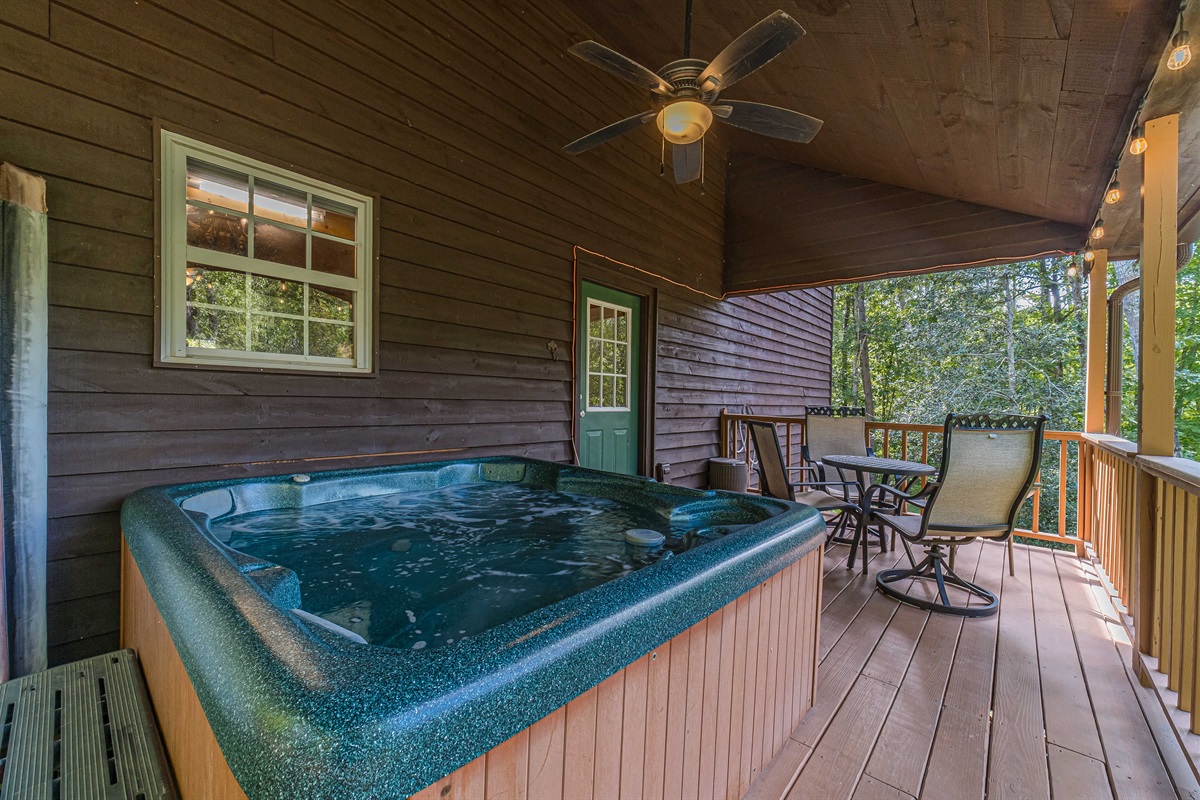 Stairs going into the cabin, Staircase in-cabin going upstairs and off back deckHoo’s There Hideaway is your ULTIMATE spot for a Relaxing and Rejuvenating getaway! Located just minuted from Downtown Helen and Unicoi State Park you are sure to find plenty to do here while on vacation!