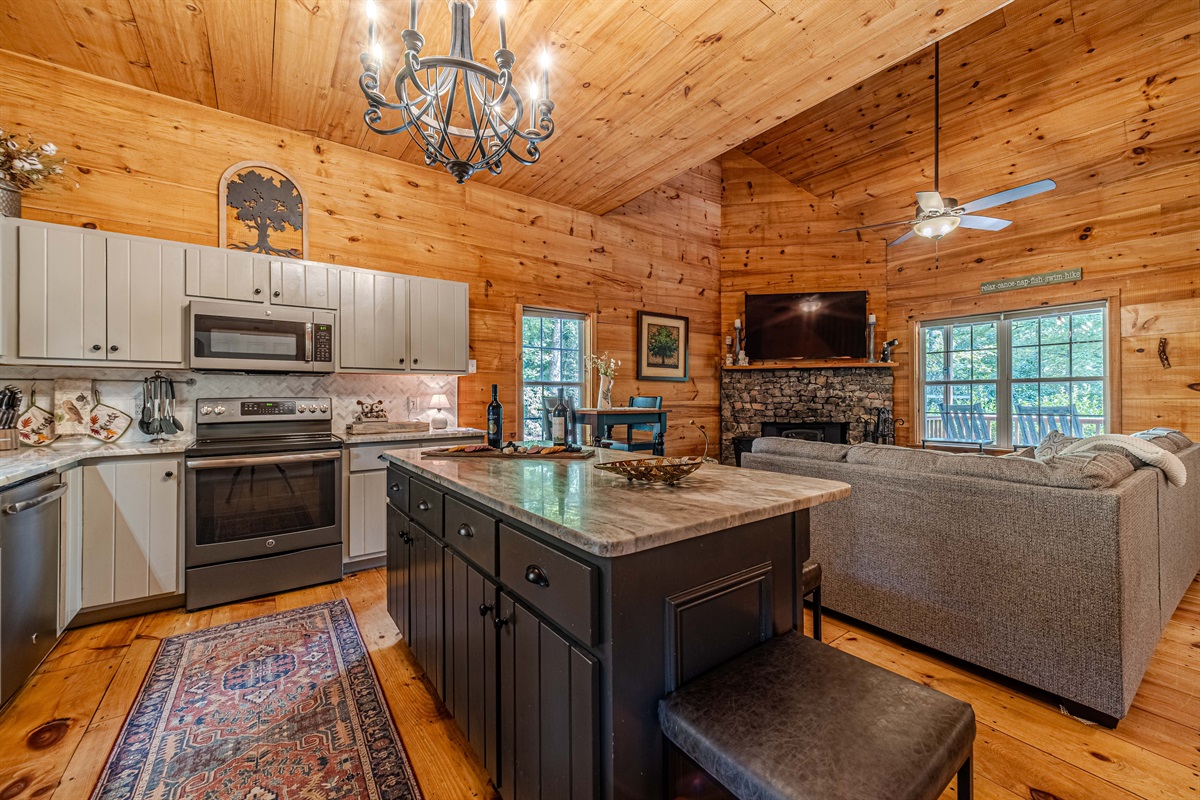 Everything from front to back of this cabin has been thought out for your comfort and enjoyability, You are sure to have a hoot at this charming cabin!