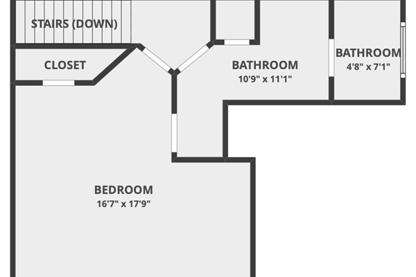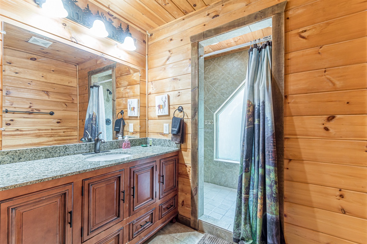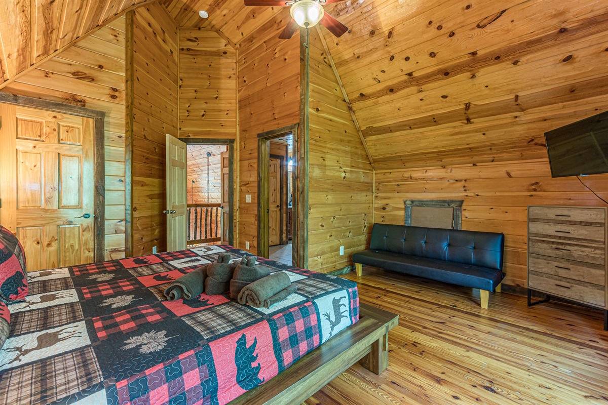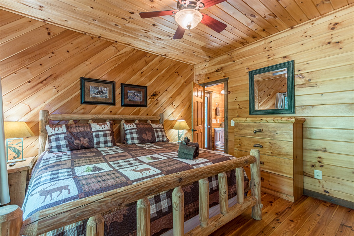 Shared bathroom with other bedroomUpstairs King Bedroom – 1 King Bed