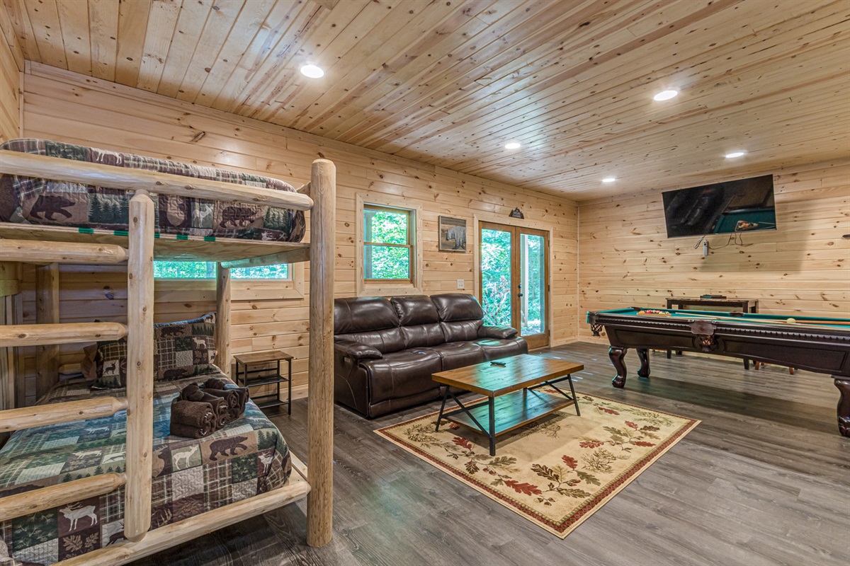 Private BathroomBasement King Bedroom – 1 Bunk Bed, 1 King Bed, 1 Sleeper Sofa